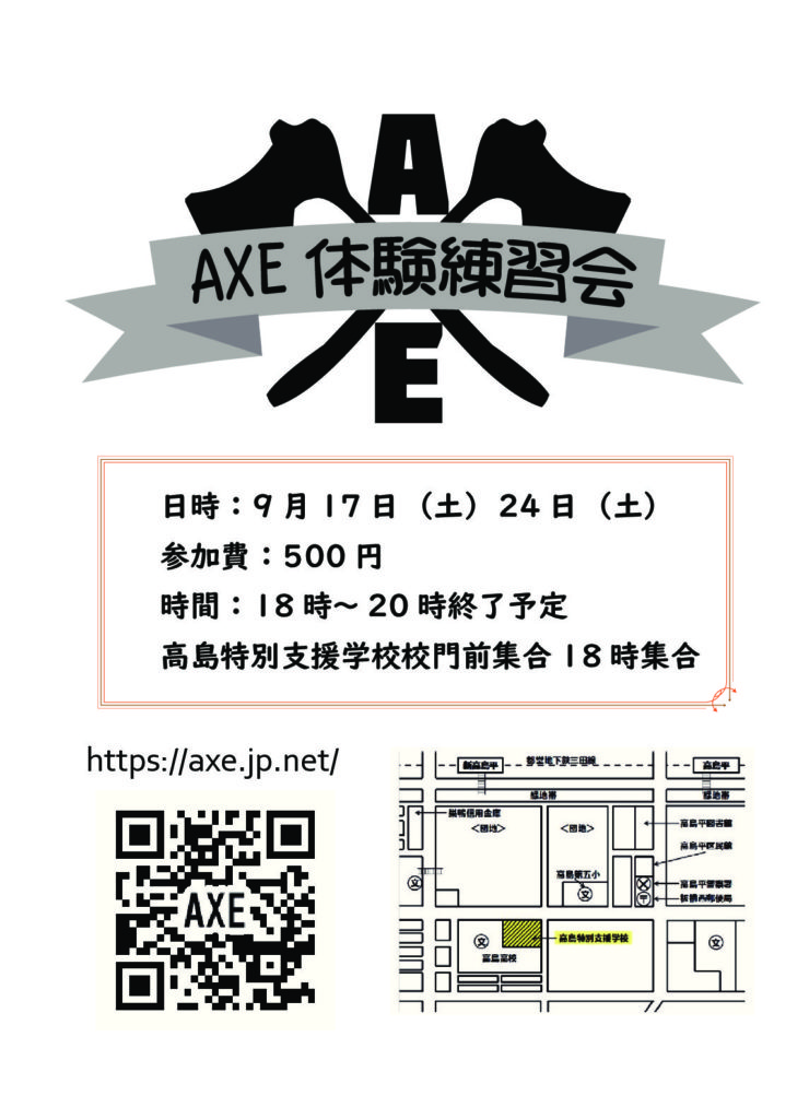 10月1日(土) 10月8日(土) 10月22日(土) 10月29日(土)は高島特別支援学校校門前に18時までに集合してください。体育館の事情により一斉入場をします。よって18時以降は入館が出来ませんので注意してください。 ...