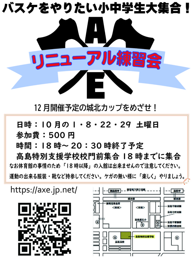 いよいよ活動再開します。まずはリニューアル城北地区AXEバスケットボール U15・U12を中心に活動します。40年の歴史を持つ「城北カップ」も、3年の延期を経て再び大会開始に向けて打合せが始まります。 次に始まるのは…サッカー?ダン...